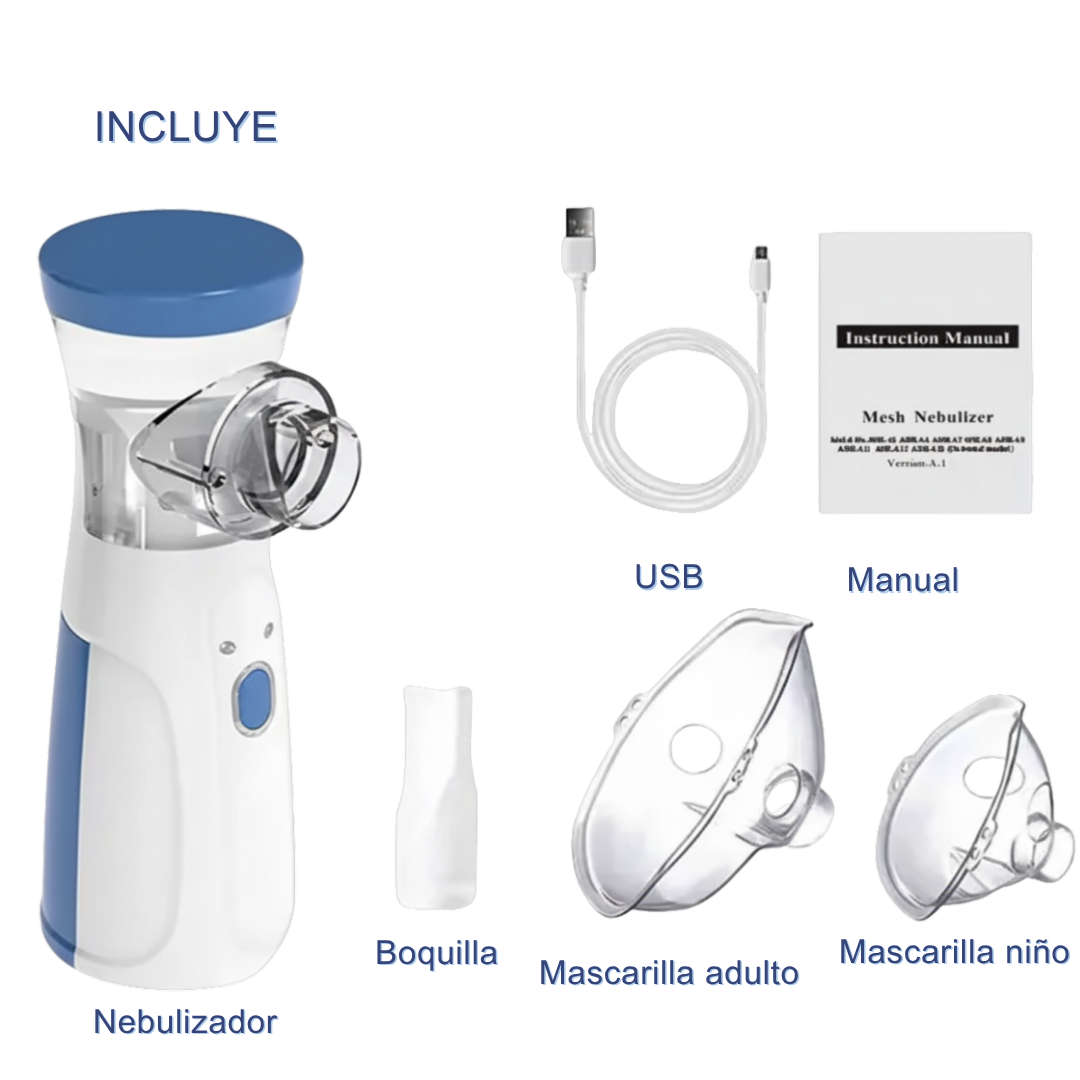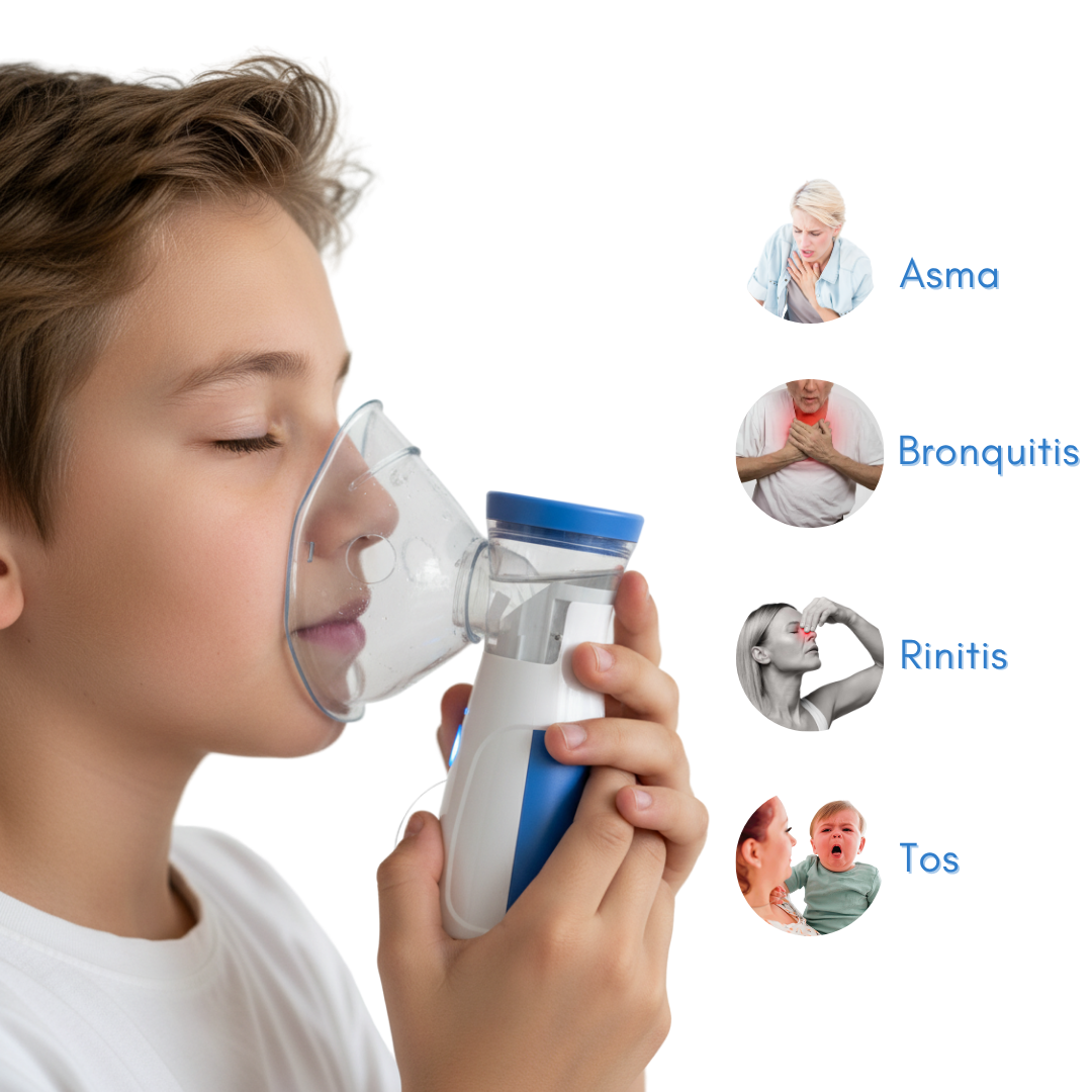 Diseñado para brindar alivio inmediato en casos de asma, bronquitis, rinitis, o tos. Su fino vapor ayuda a abrir las vías respiratorias y mejorar la respiración, ya sea con medicamentos formulados, solución salina o simplemente agua.